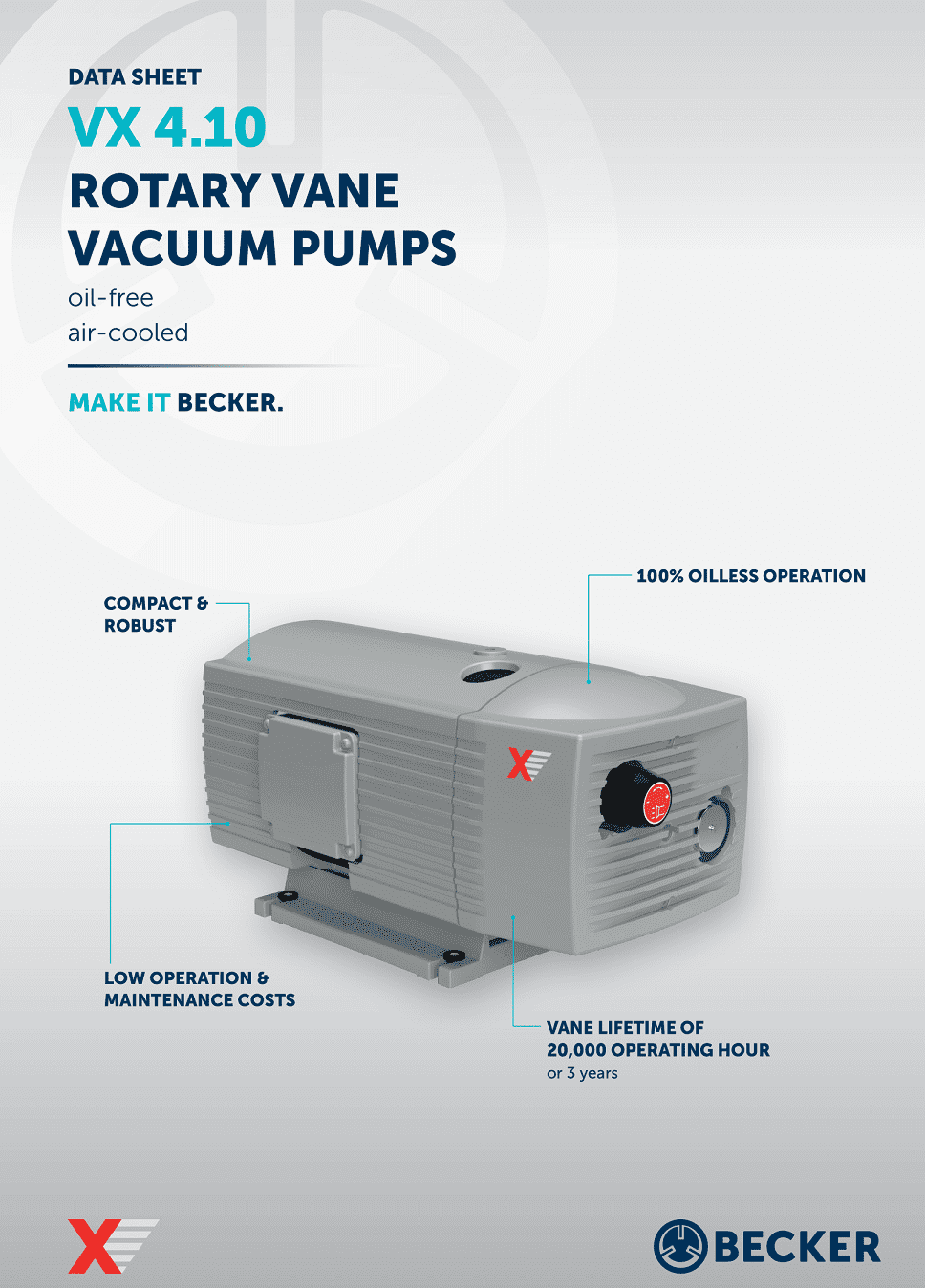 Do tính ổn định và chi phí vận hành sửa chữa thấp, thương hiệu mạnh tới từ Đức (thành lập năm 1885). Ngày nay bơm chân không Becker dòng bơm chân không khô VT, VX là một trong các dòng sản phẩm bơm chân không khô (không dầu) ưu chuộng nhất thị trường ứng dụng trong đa lĩnh vực.