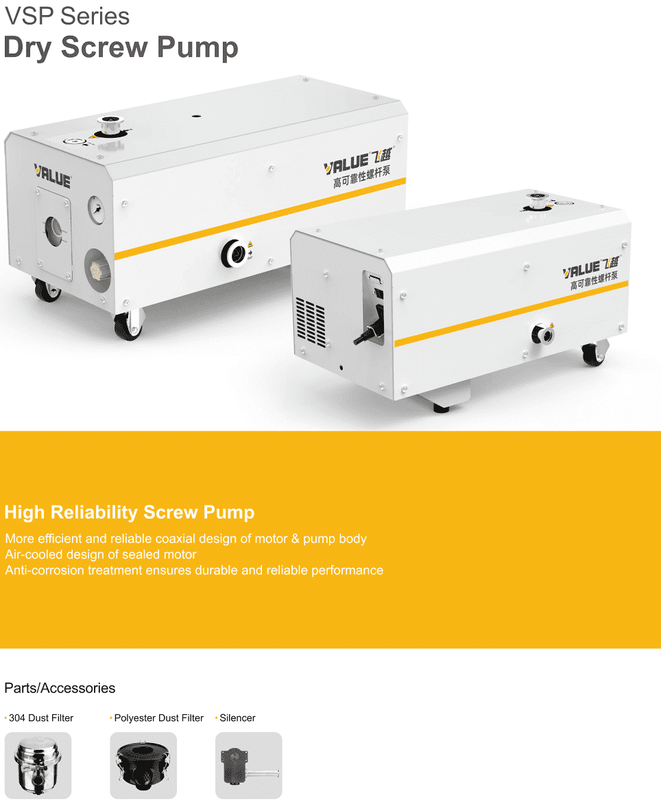 Ngoài cung cấp bơm chân không khô trục vít Value VSP60 và các sản phẩm (bơm chân không vòng dầu, bơm tăng áp dầu chân không, lọc chân không, cánh gạt và phụ tùng Value) luôn có sẵn, chúng tôi còn có sẵn các loại bơm chân không tiêu chuẩn của WSA | Korea chất lượng cao hơn của Hàn Quốc để thỏa mãn sự lựa chọn thêm của khách hàng, phù hợp với tiêu chí của khách hàng đặt ra.