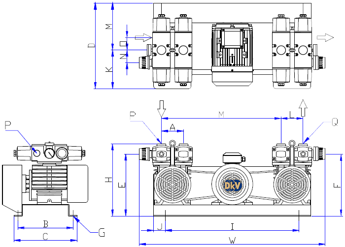 Bơm chân không khô Wonvac WBS-80B, Wonvac dry rotary vanes vacuum pumps WBS-80B: thuộc dạng bơm hút chân không khô. không dầu loại trung bình, kiểu cánh gạt (rotary vanes), có lưu lượng: 1115 lít/phút, độ chân không sâu nhất đạt: - 650 mmHg (đối với chức năng hút chân không), và nén 0.6 kgf.cm2 | 0.6 bar (đối với chức năng nén khí), chuyên dùng để hút chân không trong công nghiệp.