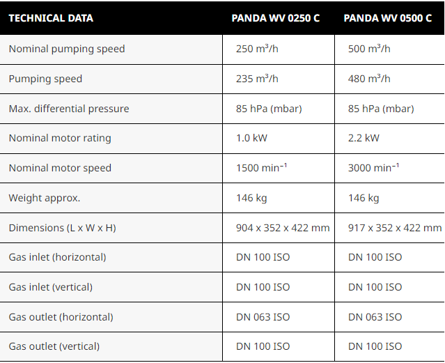 BƠM TĂNG ÁP CHÂN KHÔNG BUSCH PANDA WV 0250 C | BUSCH ROOTS BOOSTER PUMP PANDA WV 0250 C | 250 m3/h | 85 mbar