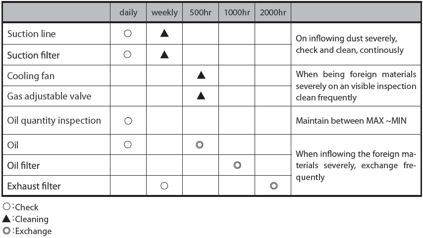 Kiểm tra lọc gió hút đầu vào hàng ngày và vệ sinh hàng tuần.