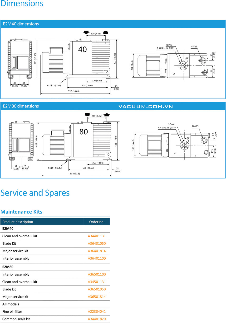 Để việc vận hành bơm chân không Edwards E2M40 hoàn chỉnh, quý khách lên lắp thêm: áp kế (đồng hồ đo chân không - vacuum gauge) để giám sát độ chân không của bơm. Cũng như lọc gió đầu vào (air inlet filter) để hạn chế bụi, dị vật lọt vào bơm và lọc tách dầu (oil mist filter) đường khí đầu ra, để hạn chế dầu thoát ra ngoài.