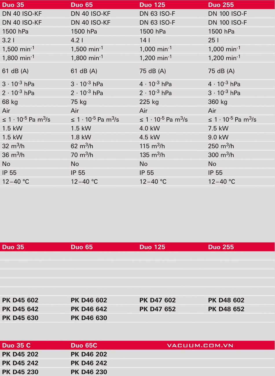 Bơm chân không Pfeiffer Duo 125 được chế tạo và sản xuất bởi Pfeiffer/Đức. Made in Germany. DKV VIET NAM nhập khẩu, phân phối và service tại Việt nam.