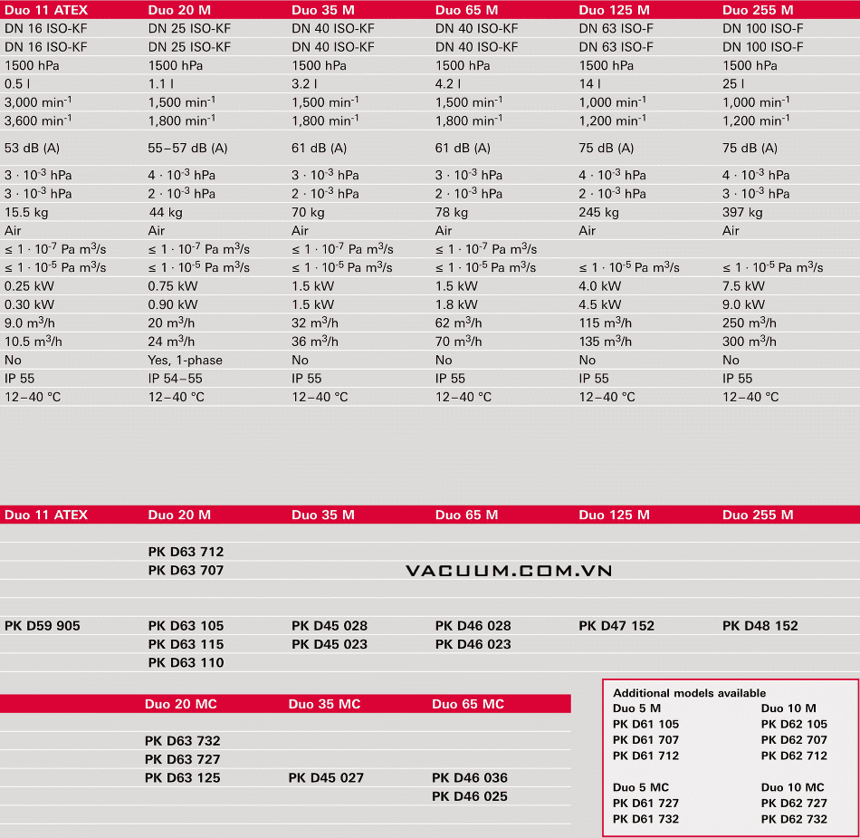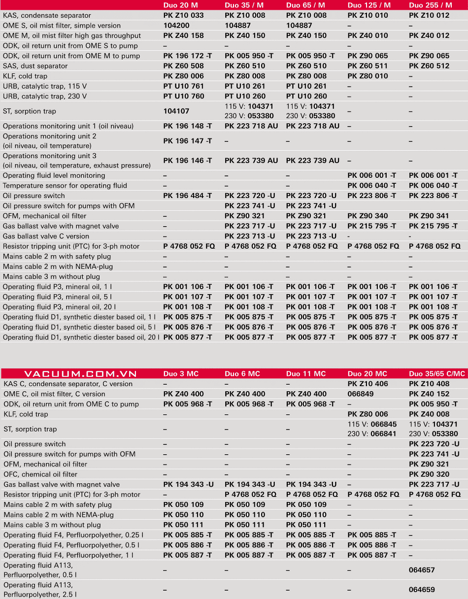 Ngoài cung cấp bơm chân không Pfeiffer Duo 65 MC và các sản phẩm (dầu chân không, lọc chân không, cánh gạt và phụ tùng Pfeiffer), chúng tôi còn có sẵn các loại bơm chân không tiêu chuẩn của WSA | Korea, Woosung | Korea, Value | China, giá rẻ hơn để thỏa mãn sự lựa chọn thêm của khách hàng, phù hợp với tiêu chí của khách hàng đặt ra.