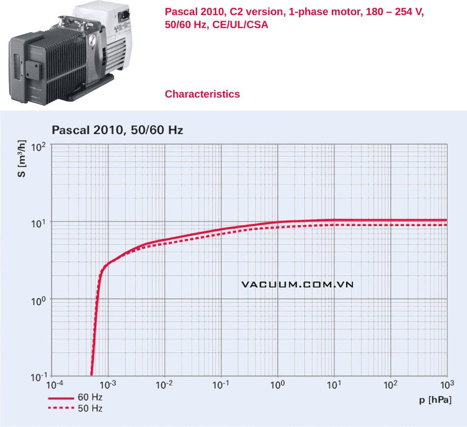 Bơm chân không Pfeiffer Pascal 2010 C2, Pfeiffer vacuum pump Pascal 2010 C2: là loại bơm chân vòng dầu (cánh gạt), thuộc dòng Pascal do hãng Pfeiffer/Đức sản xuất, lưu lượng max: 9 m3/h, độ chân không tối đa: 5 x 10-4mbar (khi mở valve chấn lưu: 1 x 10-2mbar). Bơm chân không Pfeiffer Pascal 2010 C2 sử dụng phổ biến trong công nghiệp.
