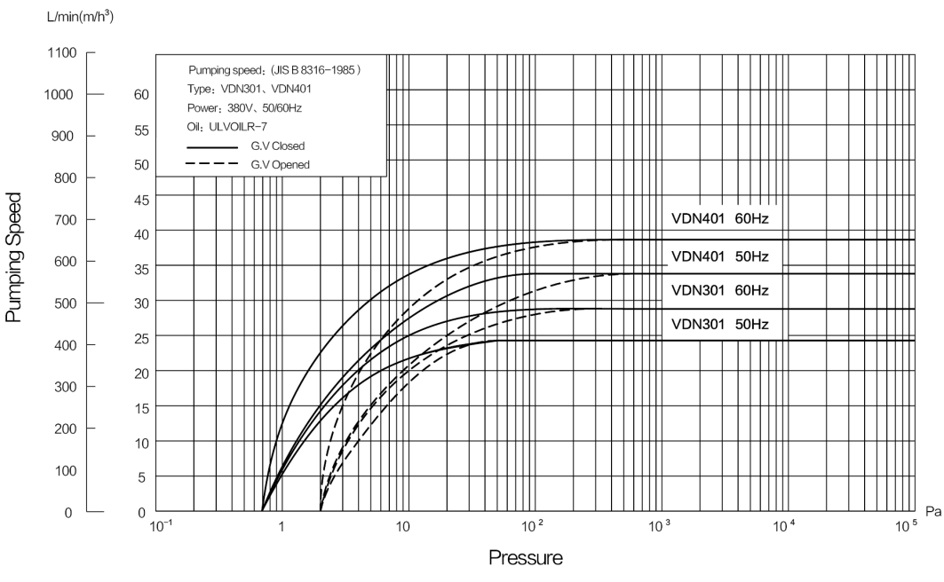 Bơm chân không Ulvac VDN301, bơm hút chân không Ulvac VDN301, Ulvac vacuum oil sealed rotary vane pump VDN301: là loại bơm chân không vòng dầu 2 cấp, cỡ trung bình, có lưu lượng: 30 m3/h (500 lít/phút), độ chân không 2x10-2 mbar | 2 Pa (khi mở chấn lưu khí Gas Ballast) và 6,7x10-3 mbar | 0.67 Pa (khi đóng chấn lưu khí Gas Ballast), chuyên dùng để hút chân không trong công nghiệp.