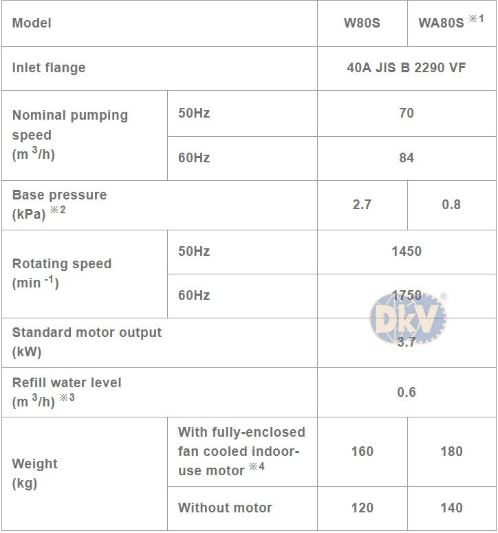 Bơm chân không Osaka W80S, bơm hút chân không Osaka W80S, Osaka Liquid-ring Vacuum Pumps Osaka W80S: là loại bơm chân không khô (không dầu) có lưu lượng: 70 m3/h, độ chân không: 2.7 kPa | 2.7x103 Pa (27 mbar), lượng nước tiêu thụ: 0.6 m3/h, chuyên dùng để hút chân không trong công nghiệp.