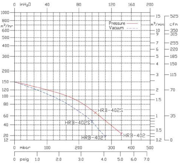 Máy thổi khí con sò Hwanghae HRB-402MP, Hwanghae ring blower HRB-402MP, Hwanghae slide channel blower HRB-402MP: có hình dạng con sò, thuộc loại 2 cấp - dual satge (2 tầng) do Hwanghae | Korea sản xuất. Máy thổi khí con sò Hwanghae HRB-402MP có lưu lượng max: 2.5 (m3/phút) | 150 m3/giờ, áp thổi max: 3.500 mmAq (350 mbar) | cột áp 3.5 mét, độ chân không: - 2.600 mmAq (-260 mbar), chuyên dùng để hút/thổi khí trong dân dụng và công nghiệp.