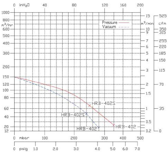 Máy thổi khí con sò Hwanghae HRB-402S, Hwanghae ring blower HRB-402S, Hwanghae slide channel blower HRB-402S: có hình dạng con sò, thuộc loại 2 cấp - dual satge (2 tầng) do Hwanghae | Korea sản xuất. Máy thổi khí con sò Hwanghae HRB-402S có lưu lượng max: 2.5 (m3/phút) | 150 m3/giờ, áp thổi max: 2.500 mmAq (250 mbar) | cột áp 2.5 mét, độ chân không: - 2.400 mmAq (-240 mbar), chuyên dùng để hút/thổi khí trong dân dụng và công nghiệp.