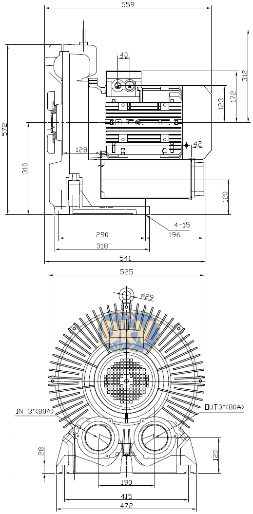 Cổ hút và cổ xả của máy thổi khí con sò Inha IHB-1010 đều có ren size tiêu chuẩn PT 3", thuận tiện khi kết nối với đường ống hoặc các phụ kiện (lọc gió đầu vào, ống giảm thanh, valve chỉnh áp....). Dưới đáy chân đế của máy thổi khí con sò Inha IHB-1010 có 4 lỗ khoan Ø 15 mm, thuận tiện khi gá đặt.